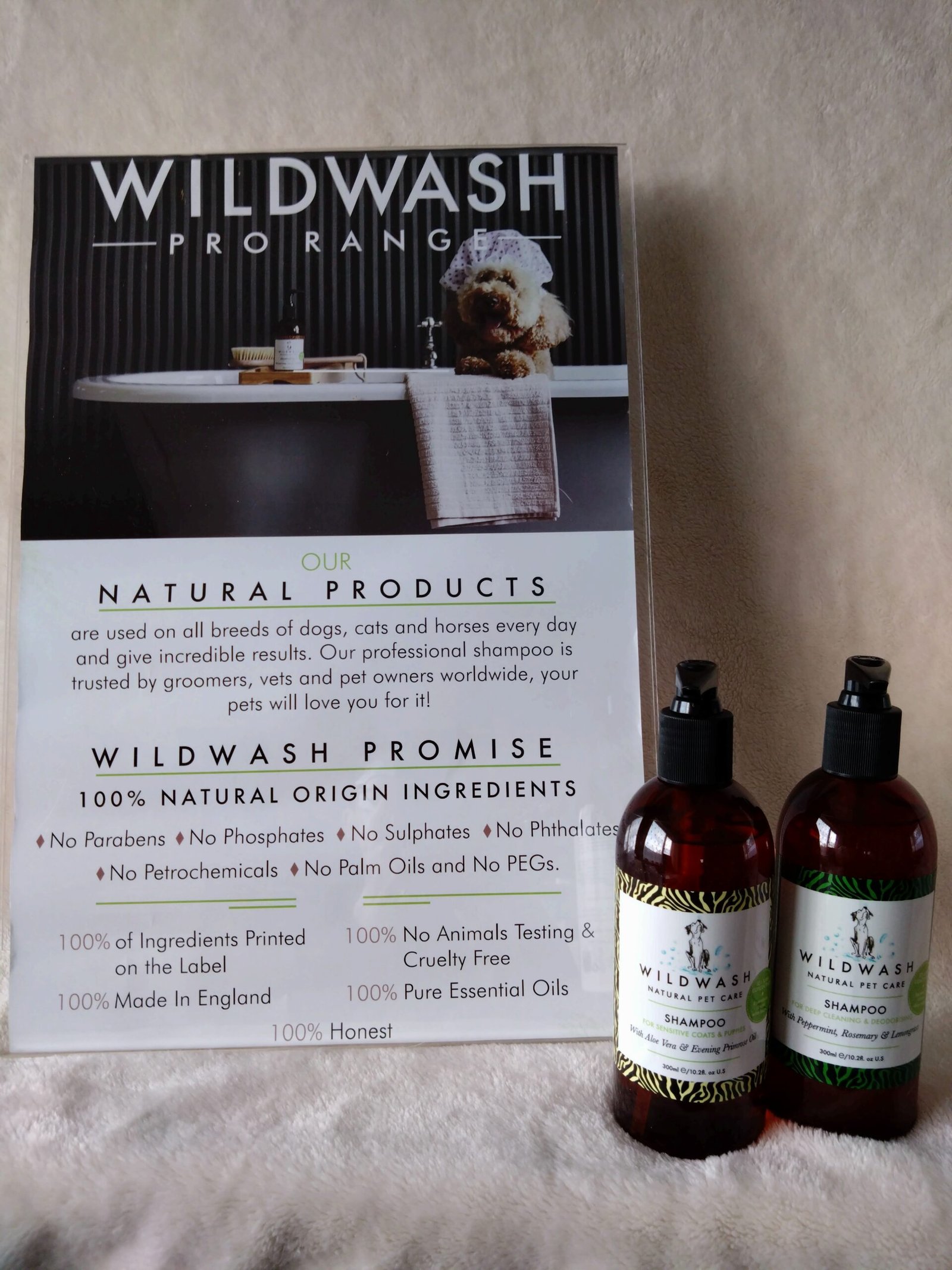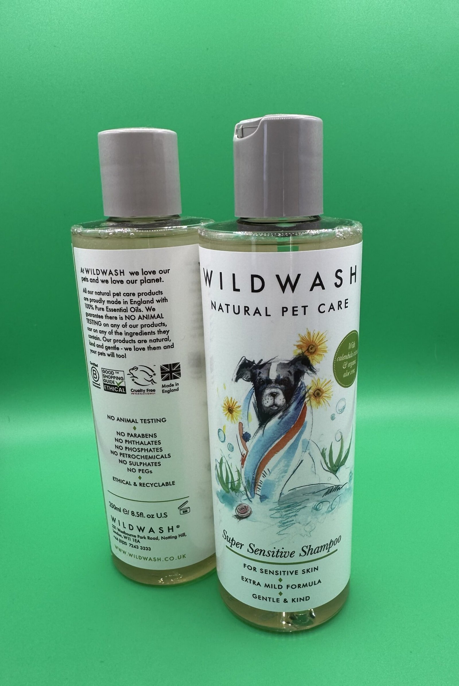 WildWash Pet is a range of natural pet cosmetics, containing No Parabens, No Phosphates, No Sulphates, No Phthalates, No Petrochemicals, No Palm Oils and No PEGs. WildWash products carry the Cruelty Free International Leaping Bunny Logo and Ethical Accreditation.